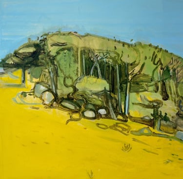 My landscapes while representational in part are also speculative and open-ended. I am interested in capturing not just what I see but how I see it. I paint moments as traces of movement and experience rather than fixed scenes, bringing together thought and feeling. Sensitive to colour in the landscape, I use it intuitively, allowing it to guide the painting process. My work moves between observation and abstraction, keeping vision fluid, personal, and open to change.