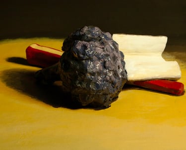 Mound of Butter (after Antoine Vollon) - sculpted soft clay, house paint, and plastic bag, 52 x 40 cm,